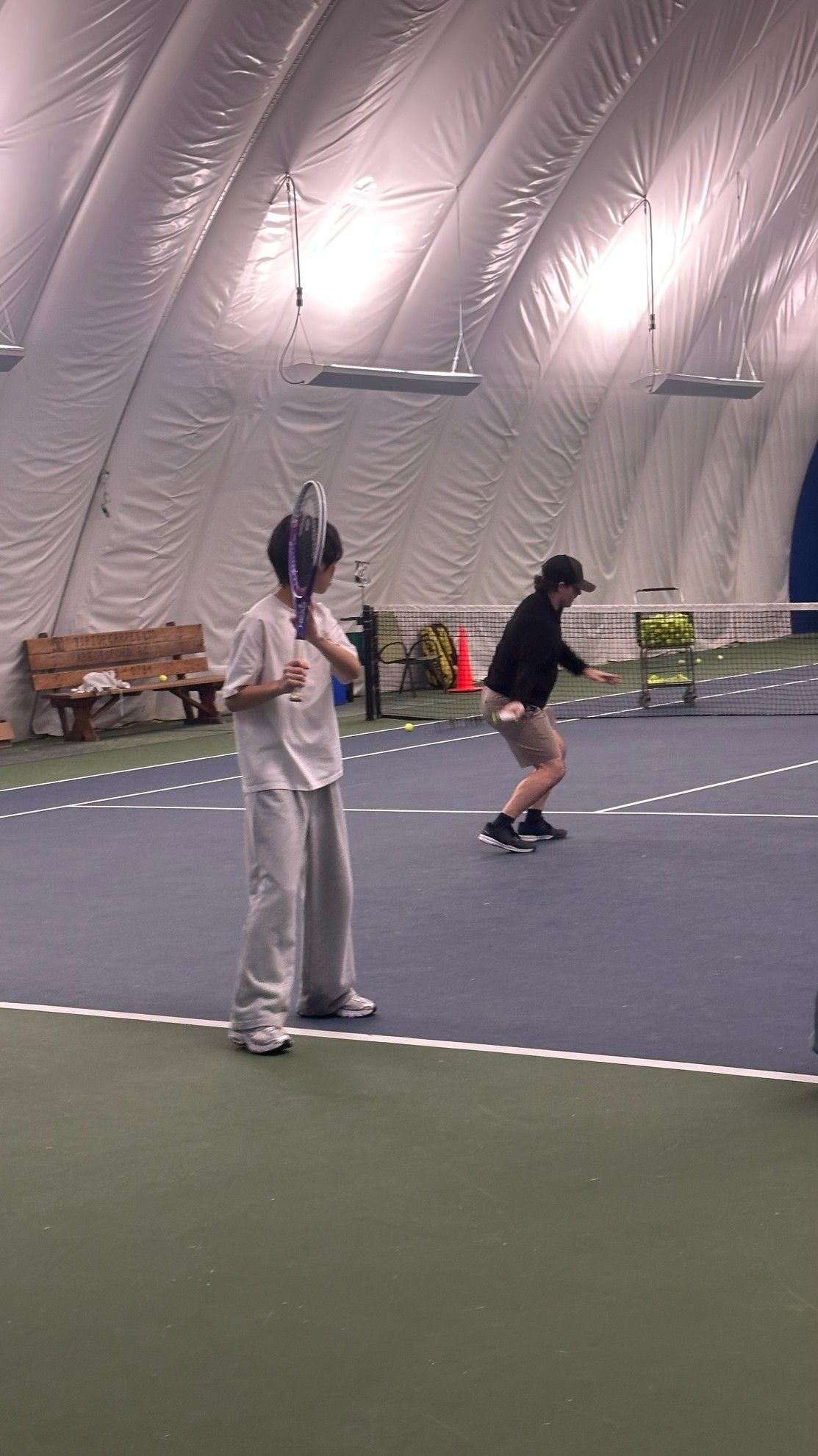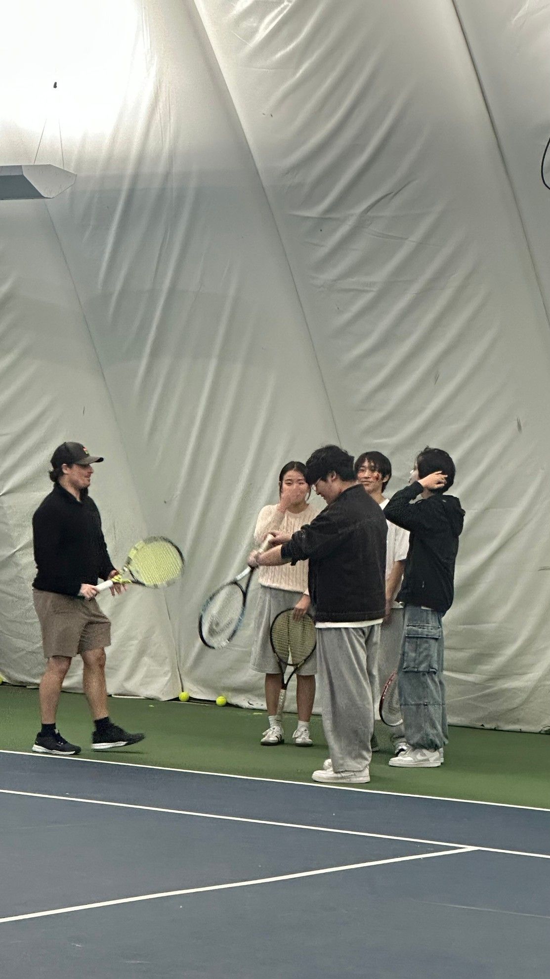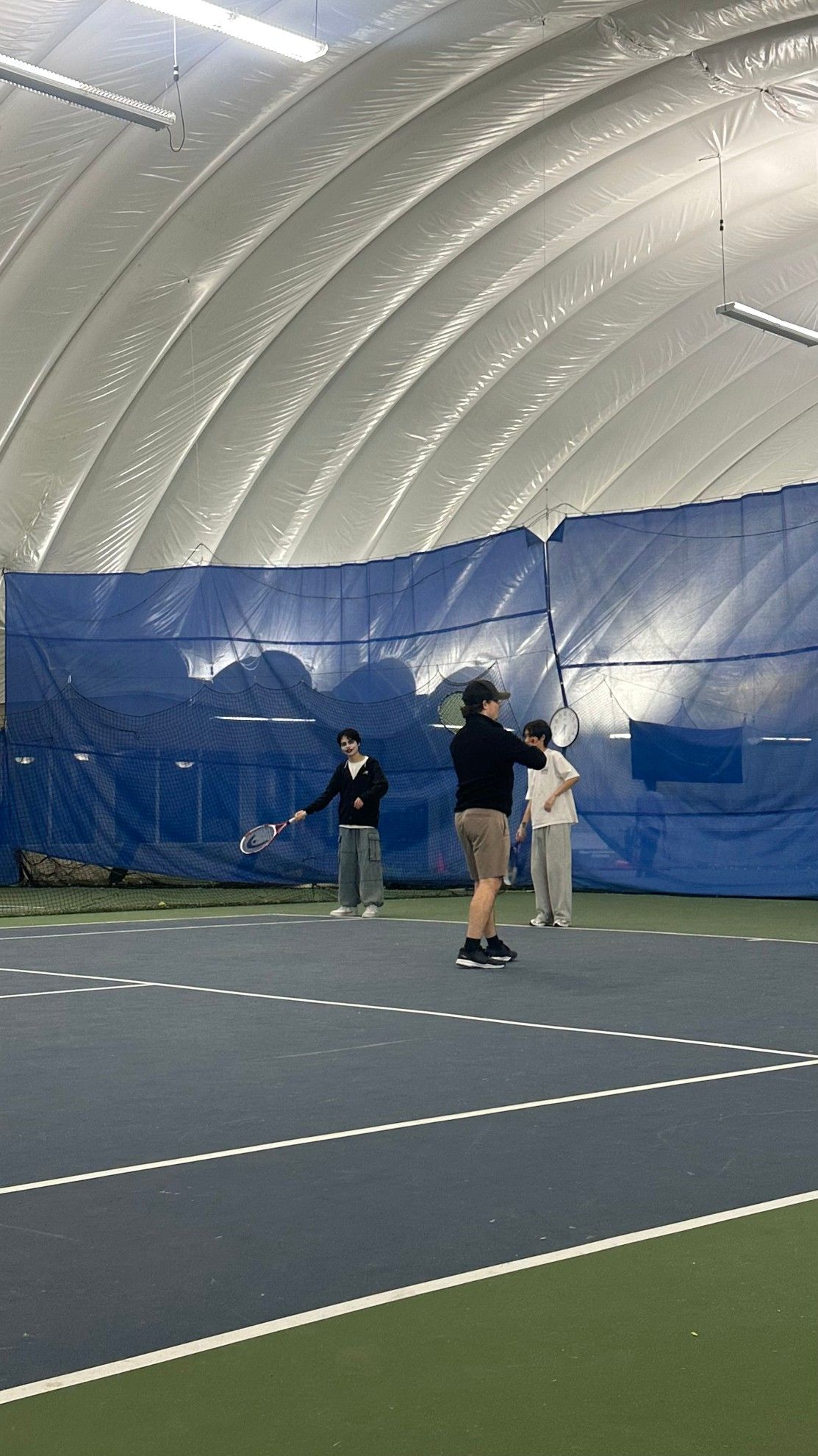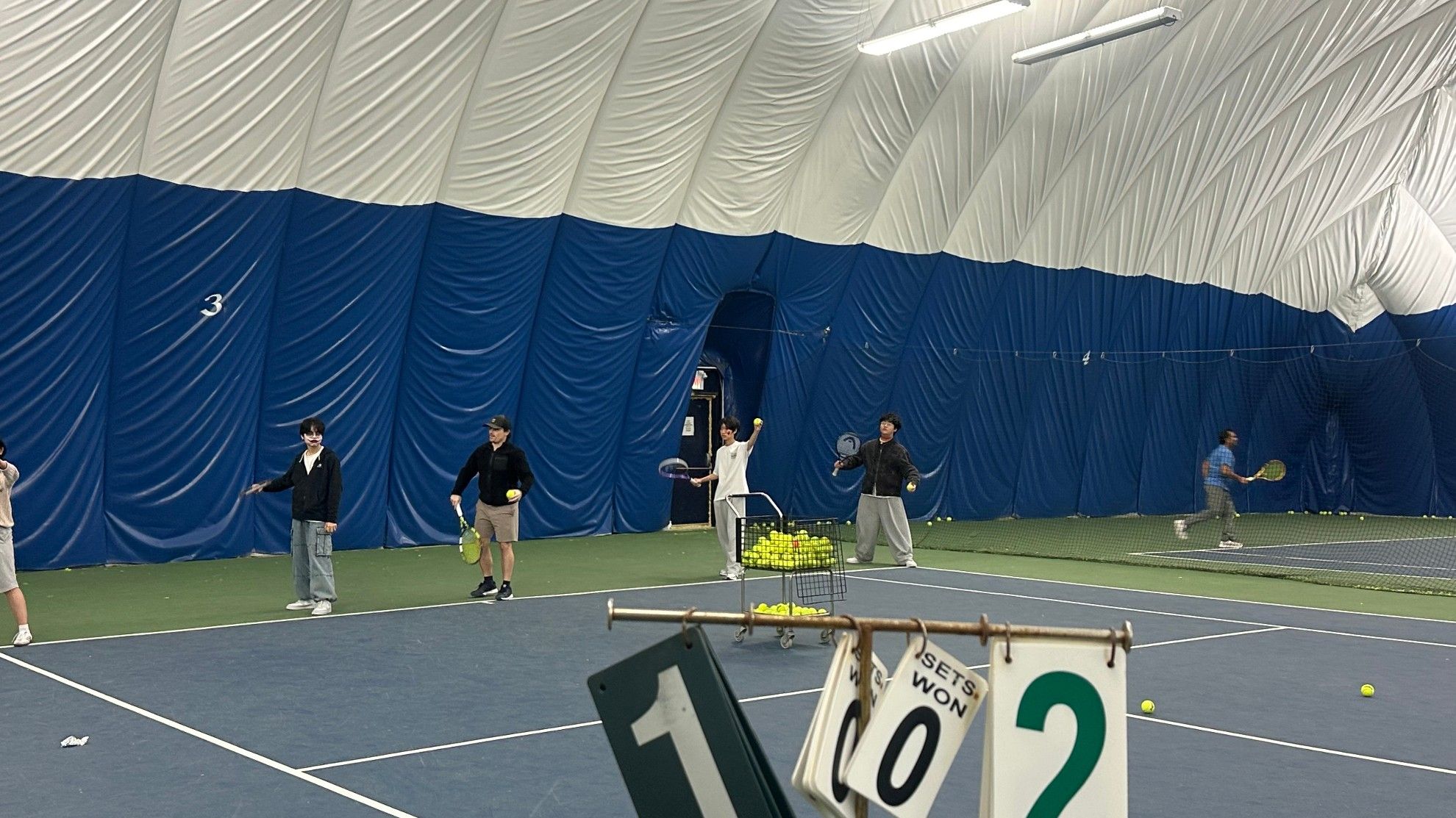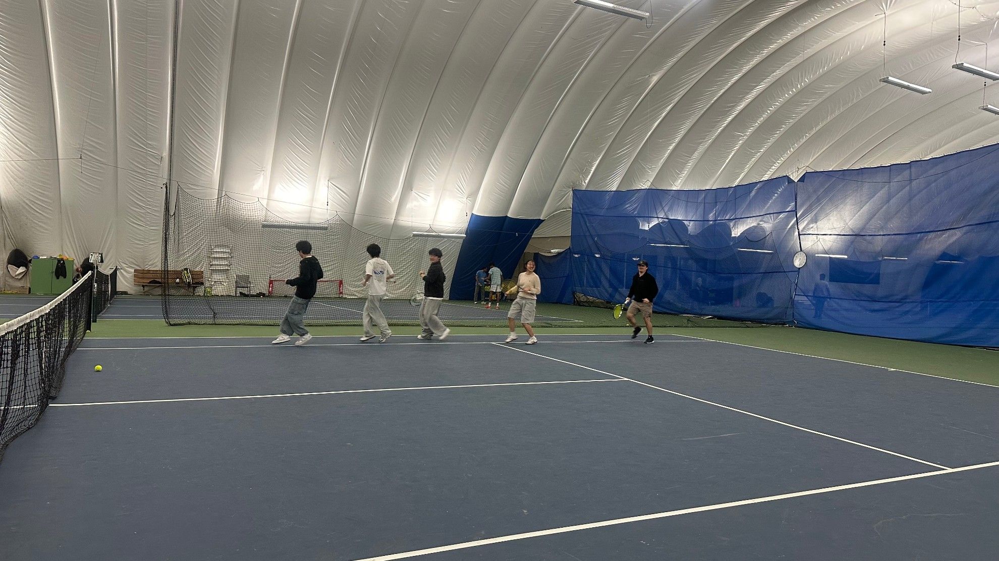 예일세컨더리 옆 실내 테니스 코트장에서 우리 학생들이 전문 코치에게 배우게 됩니다.