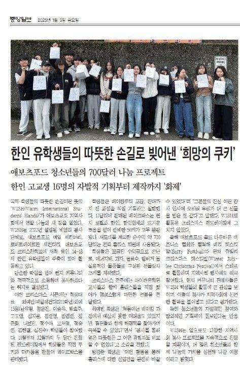 매년 크리스마스에 우리 학생들이 직접 운영하고 있는 봉사단체 WHIS에서