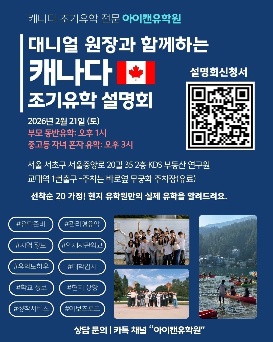2월 21일 서울 캐나다 유학설명회 [부모동반][관리형유학]